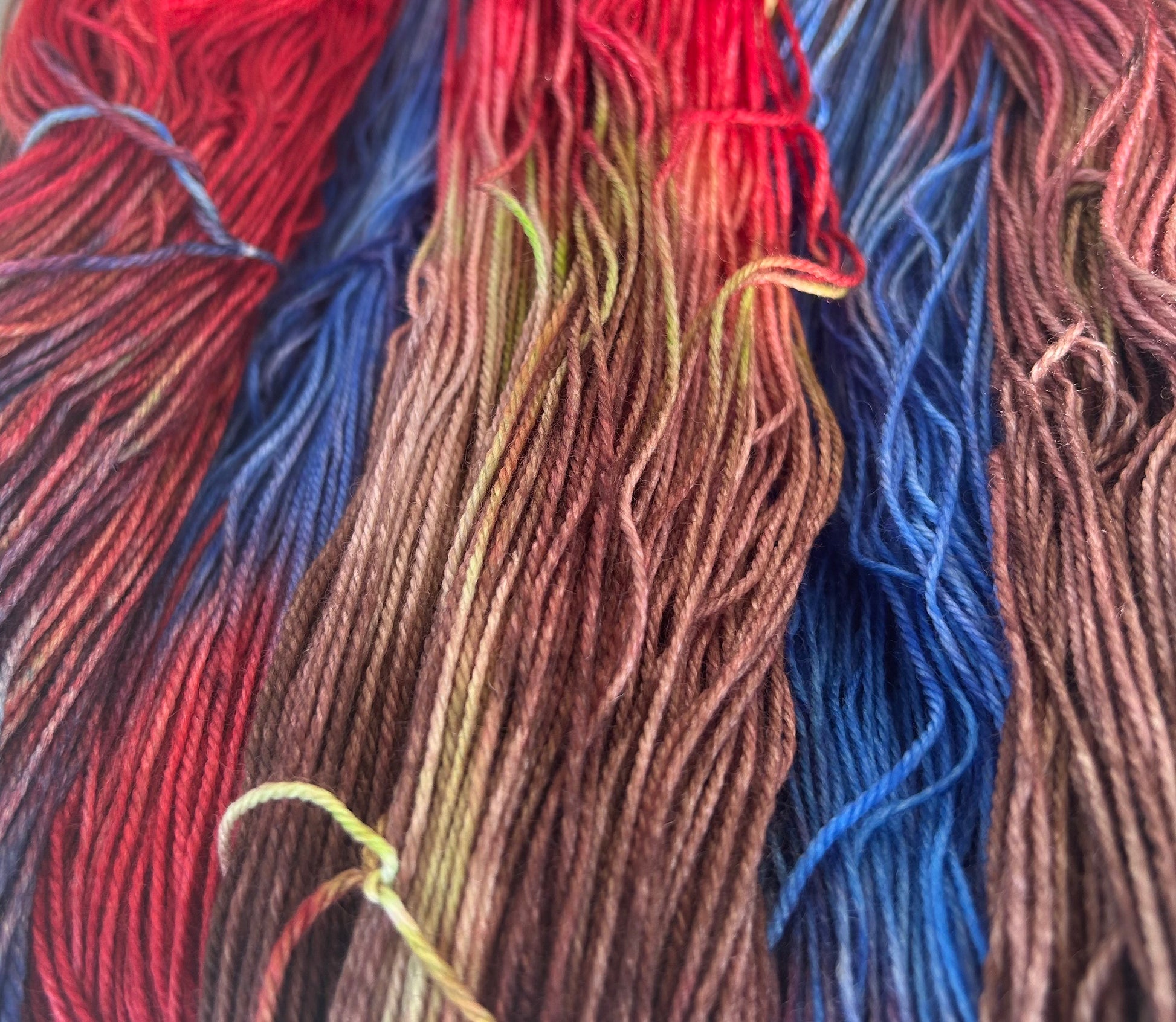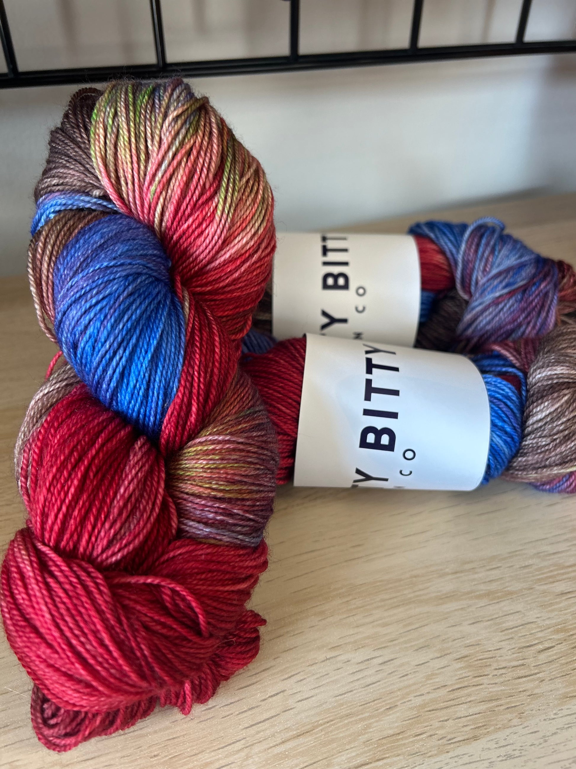 Each skein is 100g / 430yards of 80% Superwash Merino, 20% Nylon